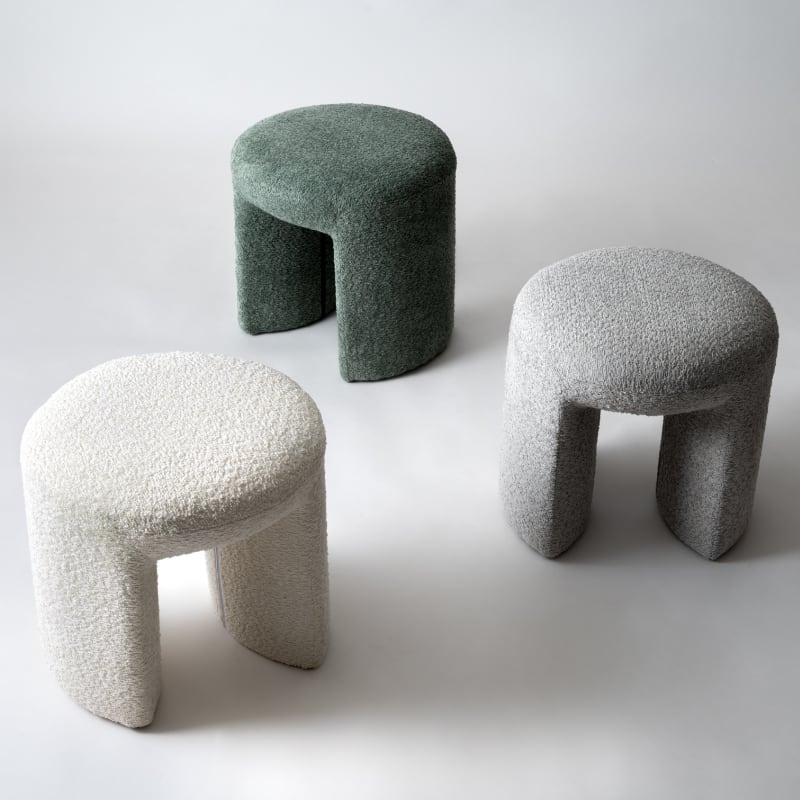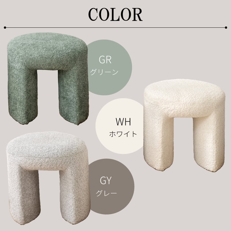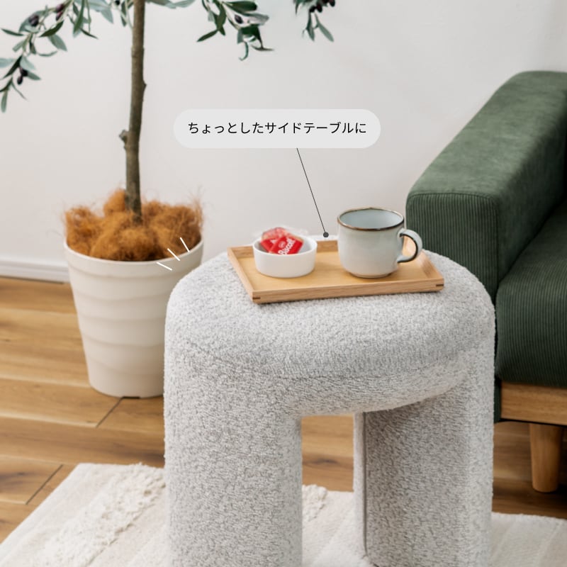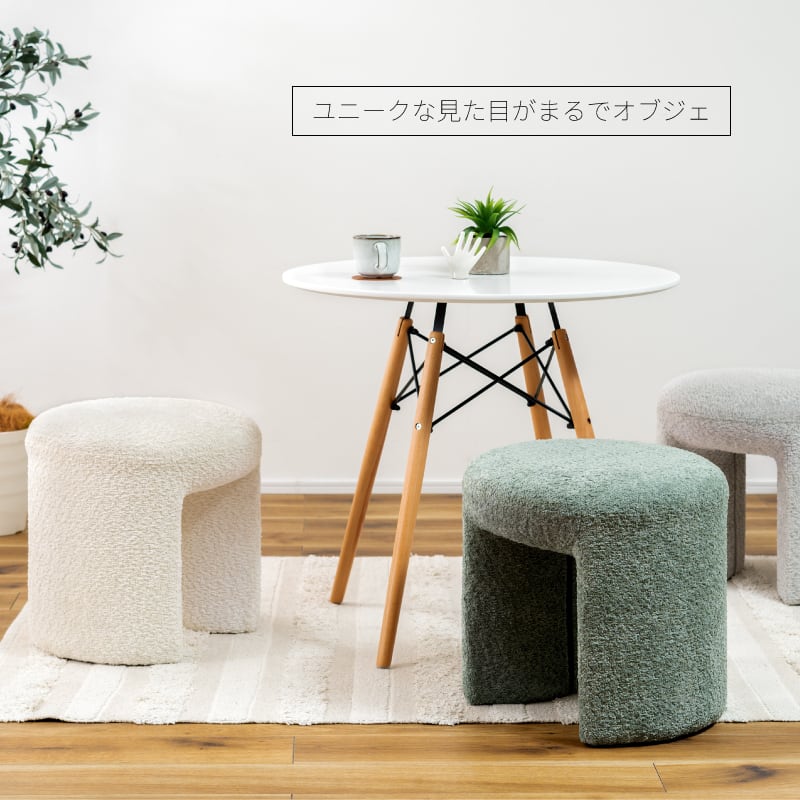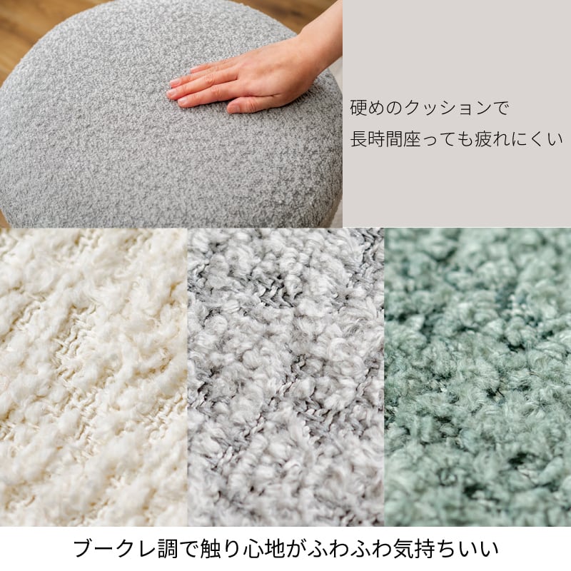 スツール おしゃれ 椅子 丸 ブークレ かわいい ファブリック 丸椅子 ふわふわ もこもこ サイドテーブル オットマン 一人掛け コンパクト 円形 グリーン ホワイト グレー 完成品 azm-0010