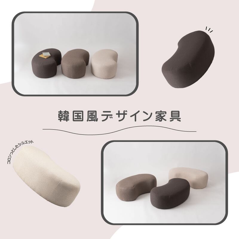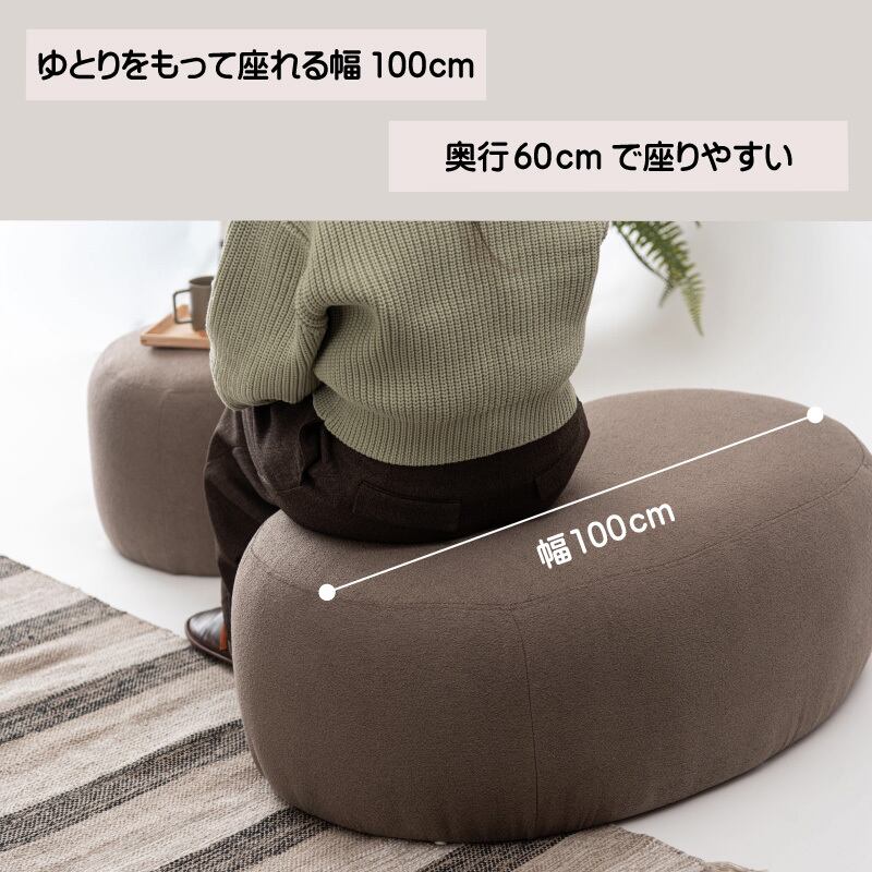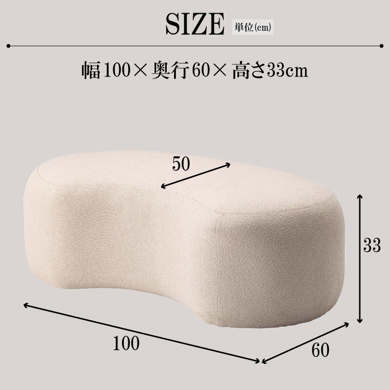 スツール 椅子 高さ33cm おしゃれ シンプル ビーンズ型 ファブリック ロータイプ 幅100cm 韓国インテリア 可愛い 低め イス 腰掛け チェア 寝室 ワイド リビング モダン 無地 布地 完成品 ベージュ チャコールグレー グレージュ azm-0016