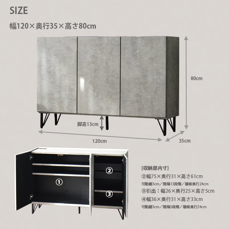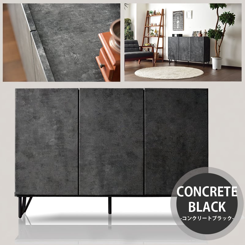 キャビネット 120 サイドボード おしゃれ コンクリート調 リビング 収納 収納棚 開き扉 引き出し リビングボード リビング収納 脚付き グレー ブラック ディスプレイ チェスト 高級感 かっこいい 奥行35cm crc-0052