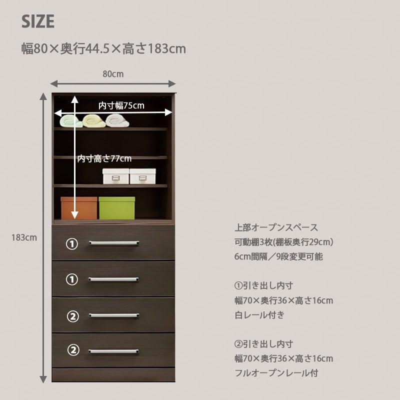 幅80×奥行44.5×高さ183cm