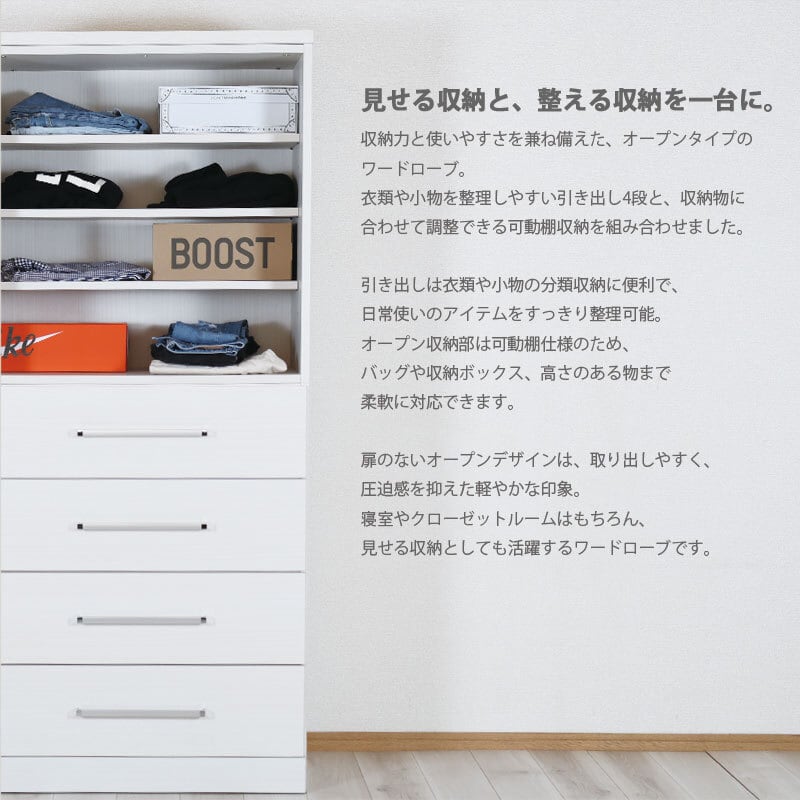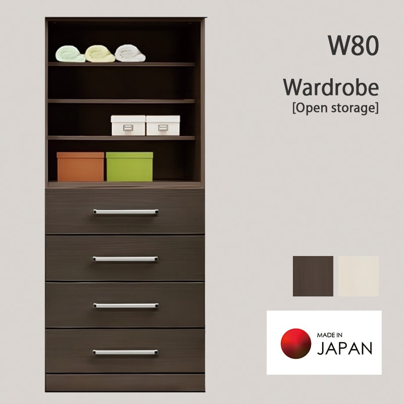幅80cmのコンパクト設計で使いやすい、国産・完成品のオープンタイプワードローブ。
