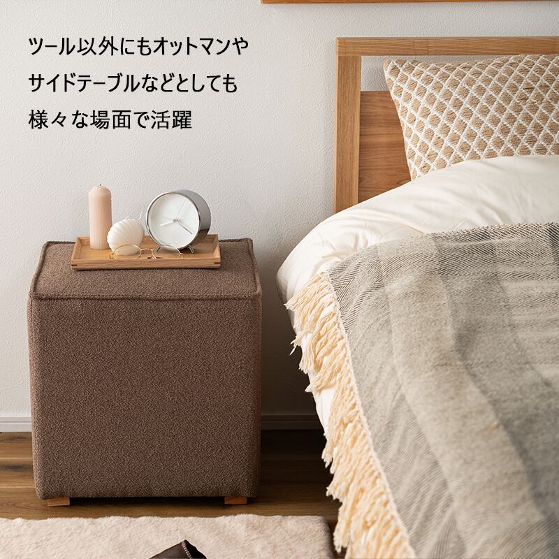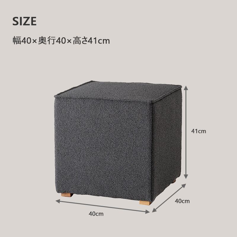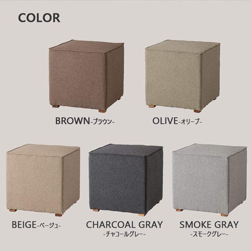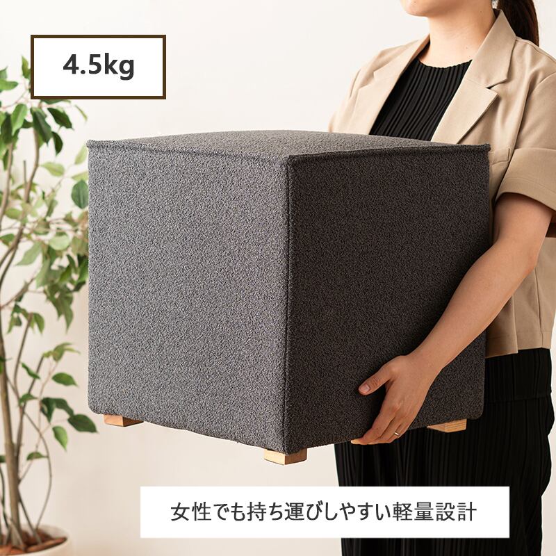 幅40cmのコンパクトサイズで使いやすいキューブ型スツール。 正方形のシンプルなフォルムは、 リビングや玄関、ドレッサーなどさまざまな空間に馴染みます。 座面にはさらりとした触り心地のファブリック生地を使用し、 クッション性のある快適な座り心地。 腰掛けとしてはもちろん、 オットマン(足置き)やサイドテーブルとしても活躍します。 重さは約4.5kgと軽量設計のため、女性でも簡単に持ち運び可能。 必要な場所へ気軽に移動してお使いいただけます。 木製脚を組み合わせたナチュラルなデザインは、 北欧テイストやモダンインテリアとも相性抜群。 完成品でお届けするため、届いてすぐにご使用いただけます。 コンパクトながら実用性に優れた、多用途で便利なキューブスツールです。 ■おしゃれで機能的 スタイリッシュなデザインで、 どんなインテリアスタイルにも馴染むおしゃれなスツール。 高めの40cmの座面のため、使い勝手も抜群です。 玄関スツール、オットマン、 サイドテーブルとしても使える多機能スツールです。 ■選べるカラー ・ブラウン(落ち着いた温かみのある色合い) ・オリーブ(おしゃれで独特な印象) ・ベージュ(ナチュラルでやさしい雰囲気) ・チャコールグレー(シックでスタイリッシュ) ・スモークグレー(洗練されたモダンな印象) お部屋の雰囲気やお好みに合わせてお選びいただけます。 ■完成品でお届け 到着後すぐに使える完成品でのお届けですので、 面倒な組み立ては不要。開梱後すぐにご利用いただけます。 【サイズ】 幅40×奥行40×高さ41cm 【素 材】 合板 ポリエステル 天然木(アッシュ) ラッカー塗装 【カラー】 ベージュ ブラウン チャコールグレー オリーブ スモークグレー 【備 考】 輸入品 完成品 商品重量:約4.5kg 【配送について】 大型家具専門の配送業者での発送となります。 軒先渡し便にて配送。 【搬入経路について】 当店取扱いの商品はサイズが大きく重量もある為、 ご購入前に設置場所および搬入経路を必ずご確認ください。 (搬入不可を理由とした商品到着後の返品・キャンセルはお受けできません。) 送料無料(一部地域除く) 北海道・東北・沖縄・離島は別途送料がかかります。(別途見積もり) ※モニターの発色によって、実際のものと色が異なる場合がございます。 クマモク KUMAMOKU