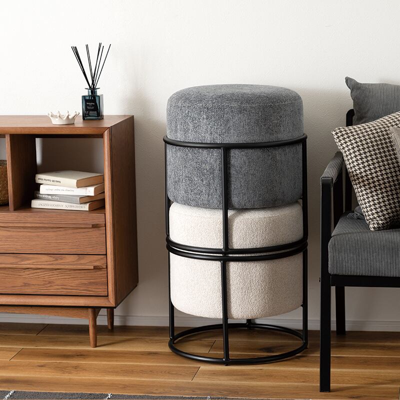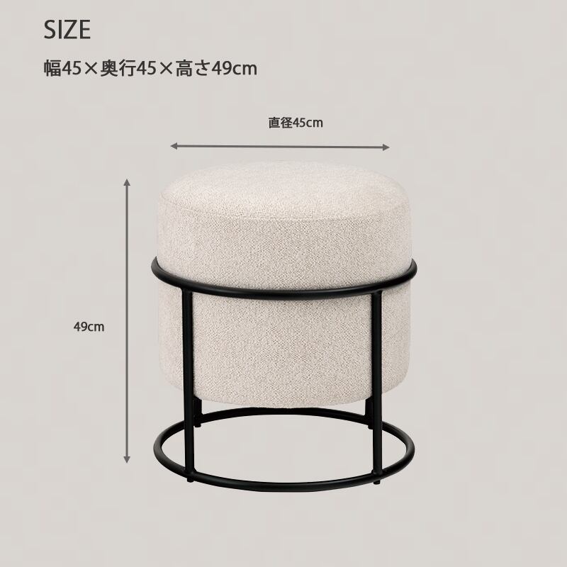 スツール 丸 スタッキング おしゃれ ラウンドスツール 丸椅子 オットマン コンパクト 北欧 椅子 完成品 腰掛け サイドテーブル アイアン 軽量 ドレッサー 玄関 チェア アイボリー グレー azm-0012