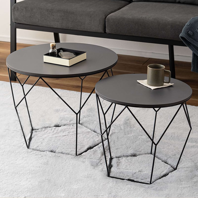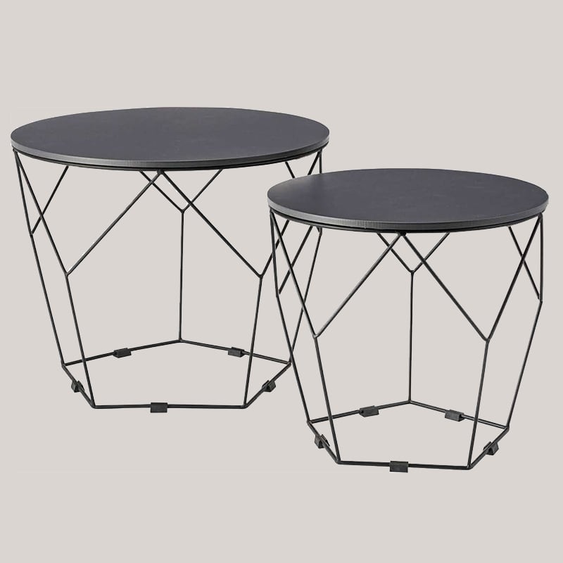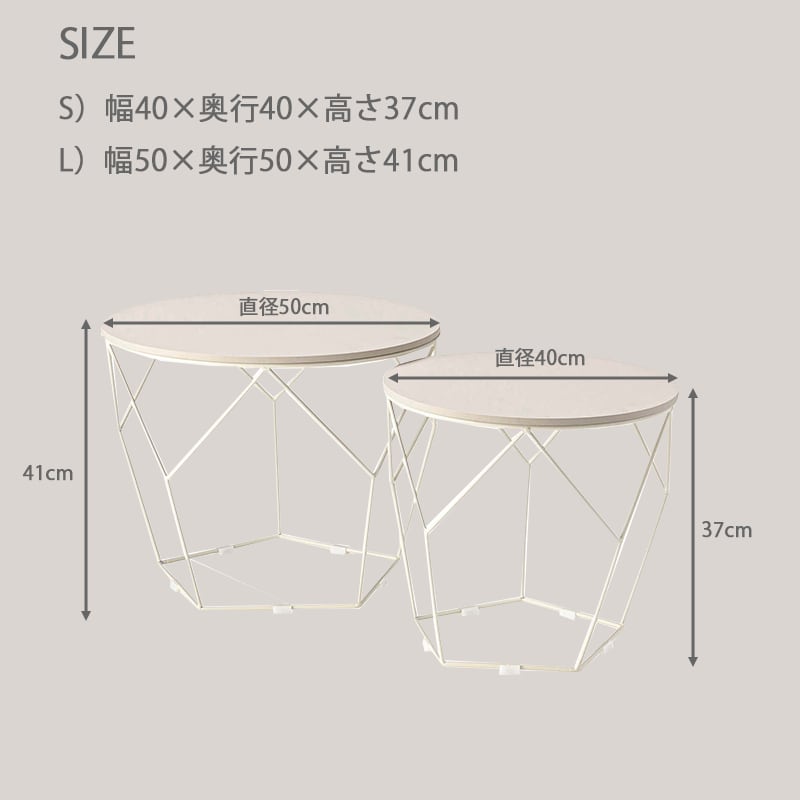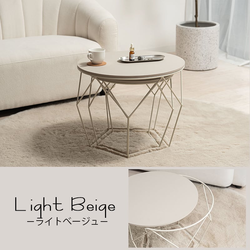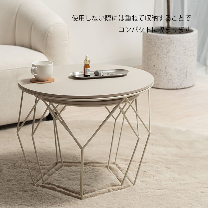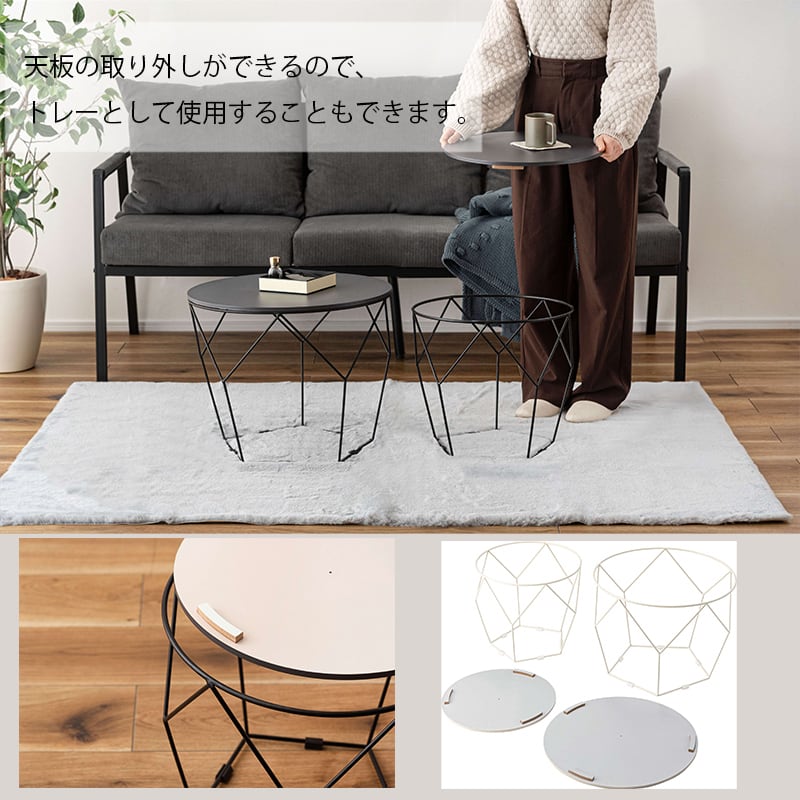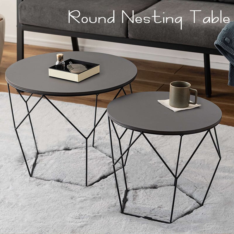 サイドテーブル ネストテーブル 2個セット 丸 おしゃれ センターテーブル アイアン ラウンドテーブル 円形 40cm 50cm 韓国インテリア 北欧 モダン トレーテーブル 天板取り外し可 コンパクト ダークグレー ライトベージュ グレー ベージュ azm-0054