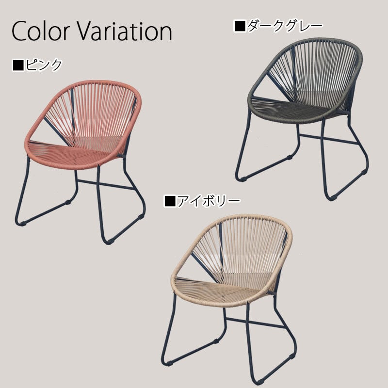 北欧風のスチールフレームにロープの編み込みがとても可愛らしい仕上がりです。 1人用のサイズ感で、リビングやダイニングにピッタリの 1人掛けチェアとしてご利用いただけます。 このチェアの魅力は、そのシンプルでありながらも存在感のあるデザインです。 どんなインテリアにも調和し、お部屋のアクセントになります。 また、ロープの編み込みが背中にぴったりフィットし、快適な座り心地を実現します。 インテリアのアクセントに最適のロープ×スチールのチェア ロープチェアならではのリラックスできる座り心地 通気性もあるため快適にお過ごしできます。 リビングダイニングだけでなく、 ベッドサイドなどお好きな場所に◎ 軽いので持ち運び楽々 マットなブラックスチールのフレームと あたたかみのあるロープの組み合わせがおしゃれで可愛い 【サイズ】 幅62×奥行60×高さ80cm(座面高さ43cm) 【素 材】 ロープ(ポリプロピレン) スチール 【カラー】 ダークグレー アイボリー ピンク 【備 考】 輸入品 組立品 【配送について】 大型家具専門の配送業者での発送となります 軒先、玄関渡し便にて配送 日時指定不可 送料無料(一部地域除く) 北海道・東北・沖縄・離島は別途送料がかかります。(別途見積もり) クマモク KUMAMOKU